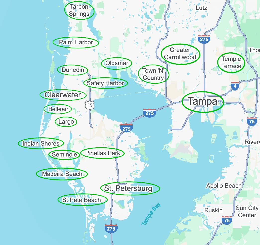 Major cities serviced by our dog poop service Tampa Bay location include: